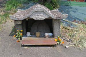 明智地蔵 田畑を授けられた光秀への感謝から、地元民が「明智地蔵」と称して 地蔵尊を祀ったと伝えられている。 |